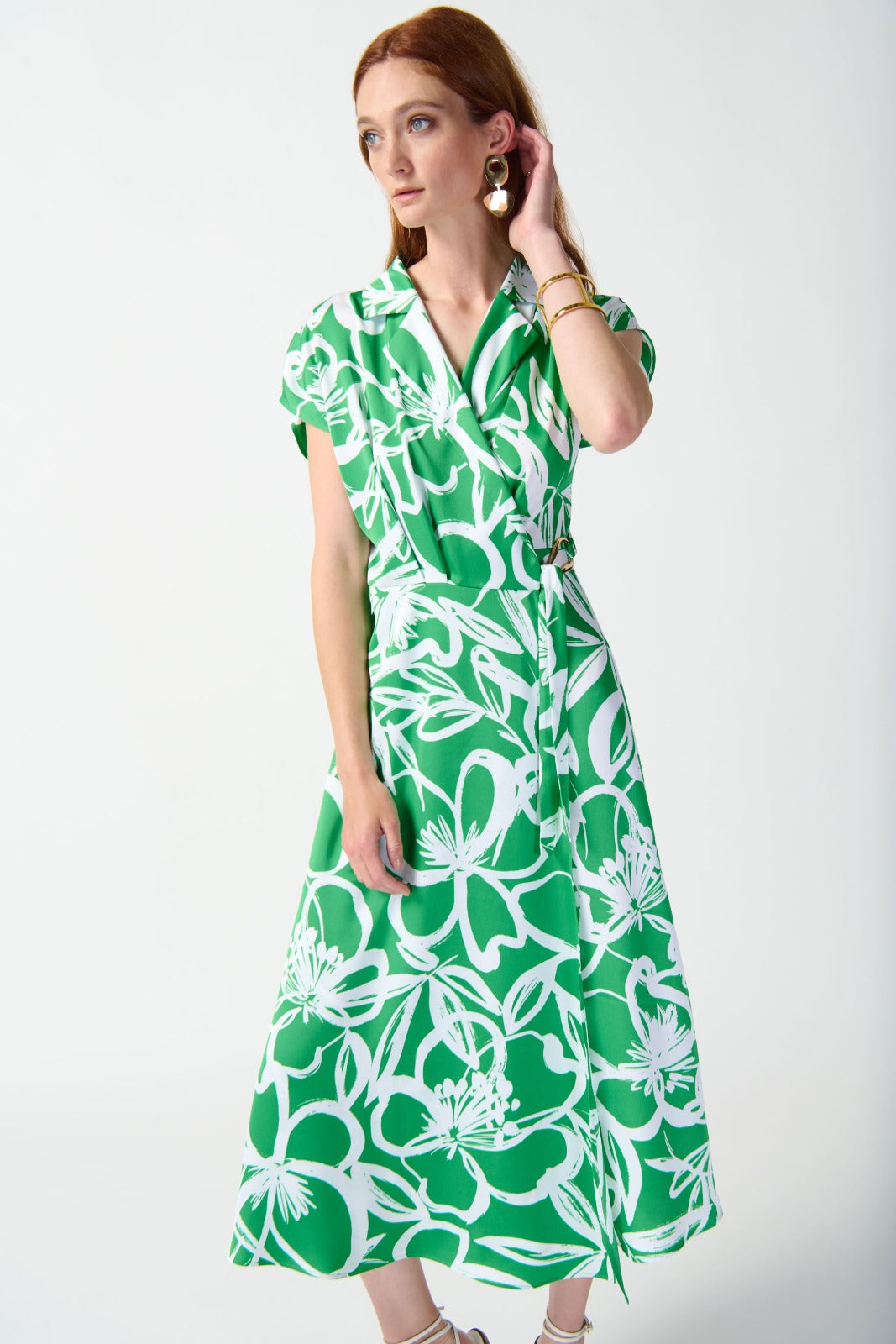 Joseph Ribkoff Green/Vanilla Floral Print Flowy Wrap Dress Style 242030