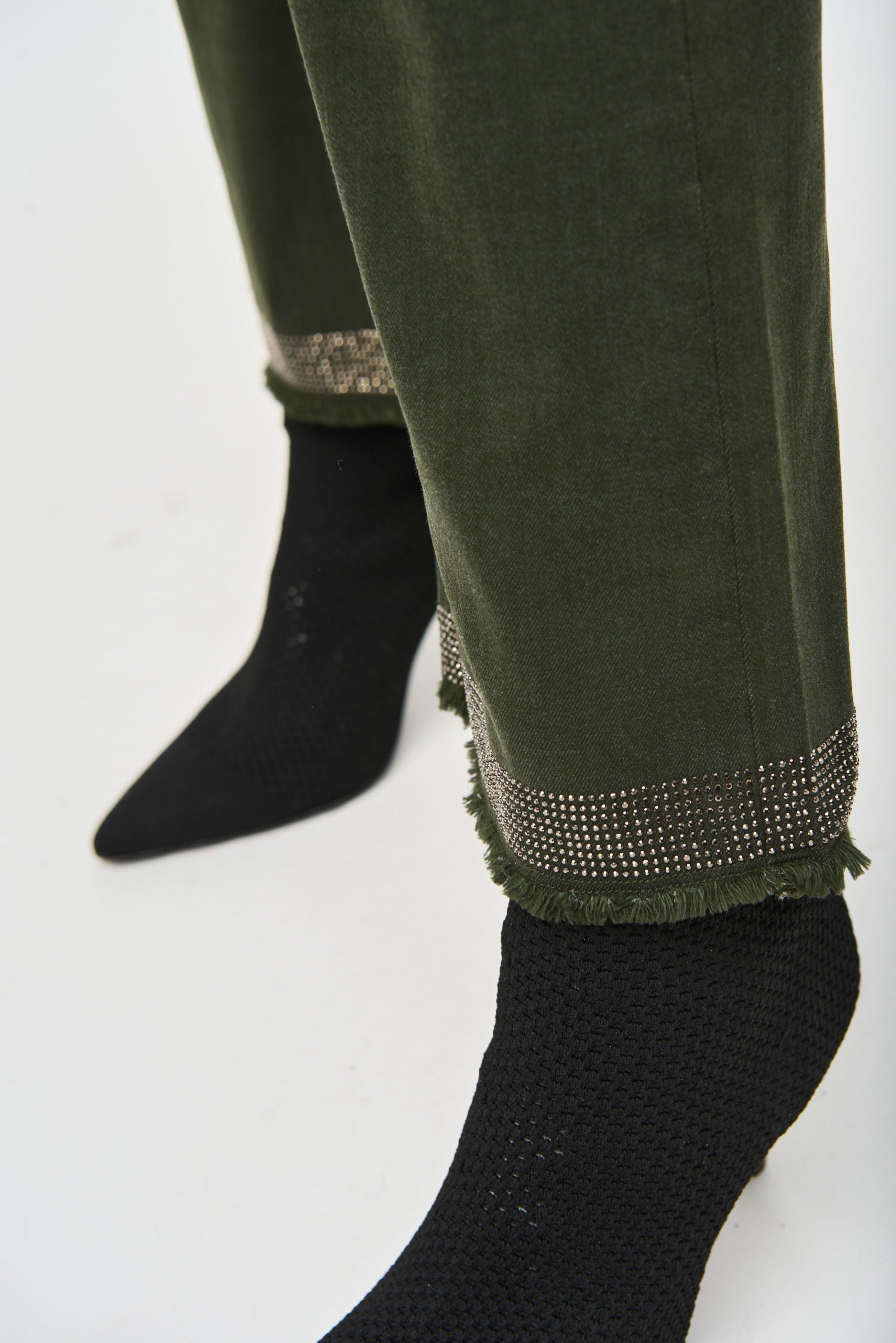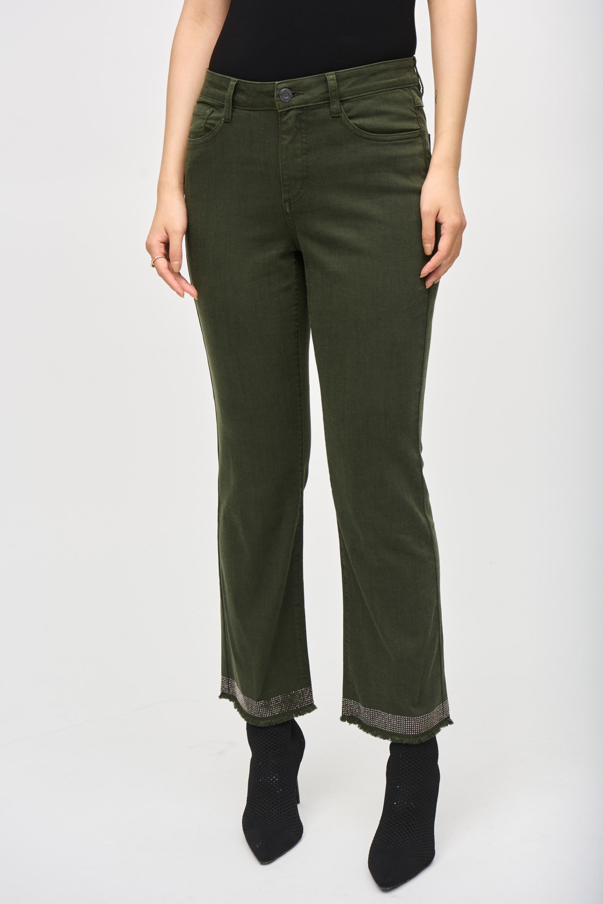 Joseph Ribkoff Iguana Denim Straight Pants With Frayed Hem Style 243964