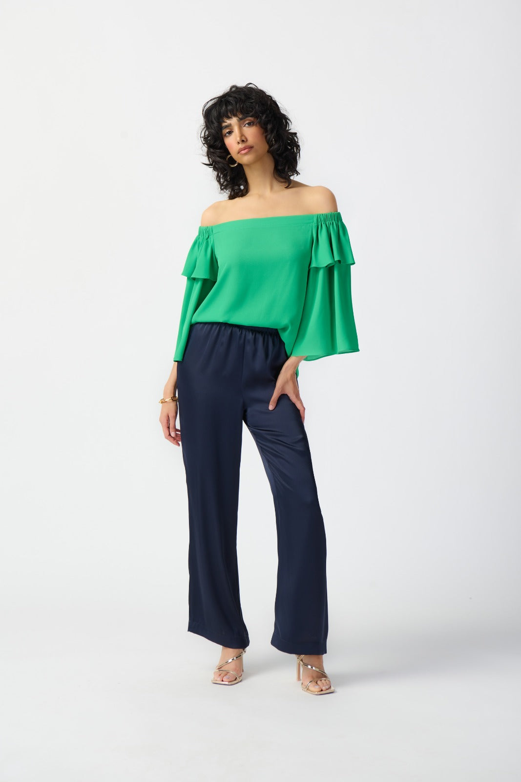 Joseph Ribkoff Island Green Off-Shoulder Flared Top Style 241305