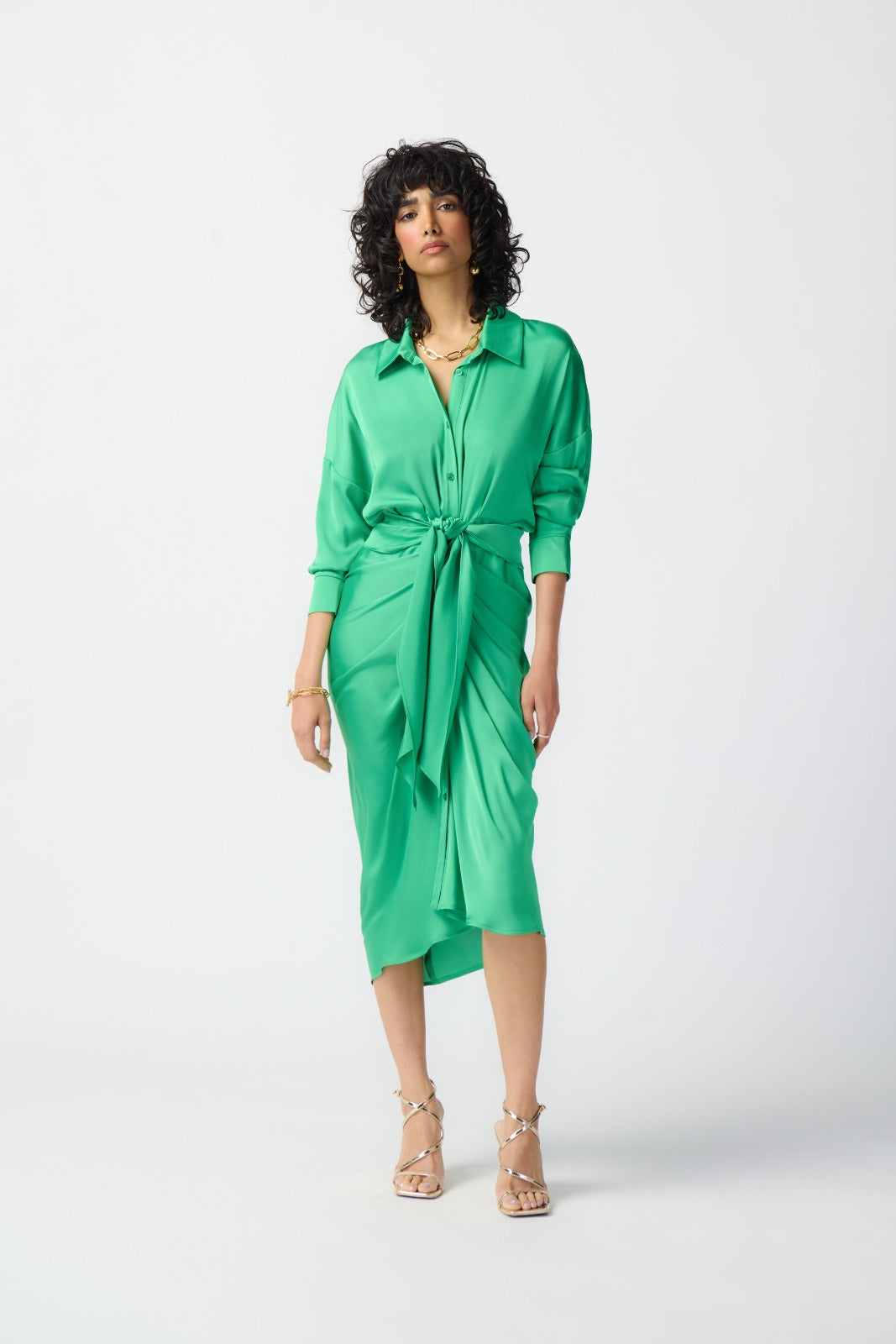 Joseph Ribkoff Island Green Satin Shirt Dress Style 241236