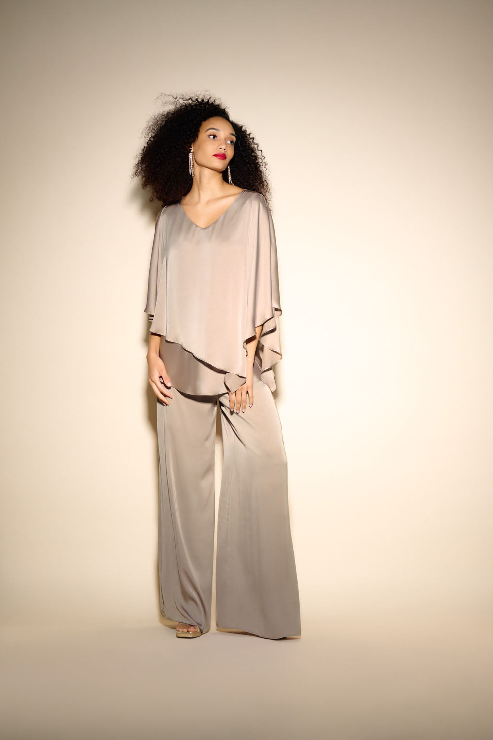 Joseph Ribkoff Latte Satin Wide-Leg Pants Style 233785