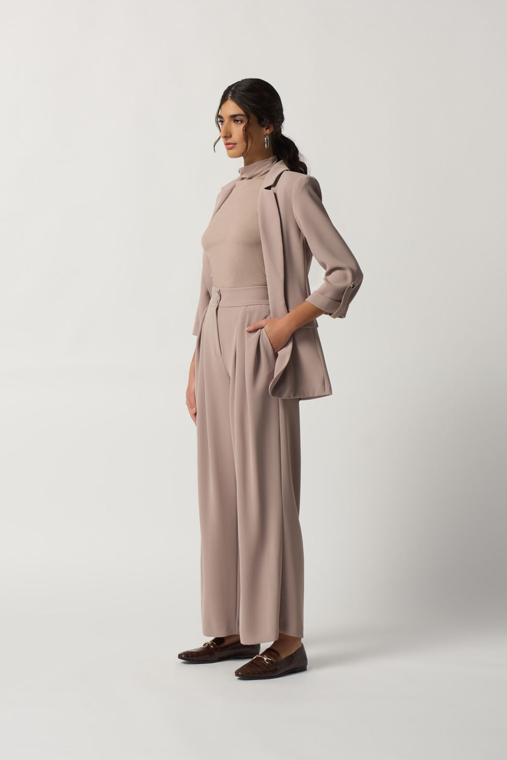 Joseph Ribkoff Latte Woven Wide-Leg Pants Style 233043