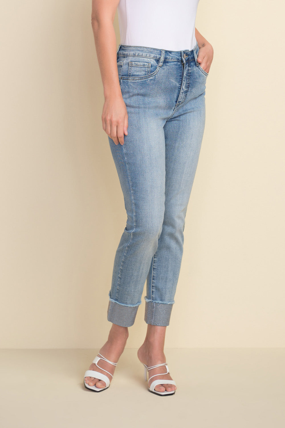 Joseph Ribkoff Light Blue Sparkle Cuff Jeans Style 212915