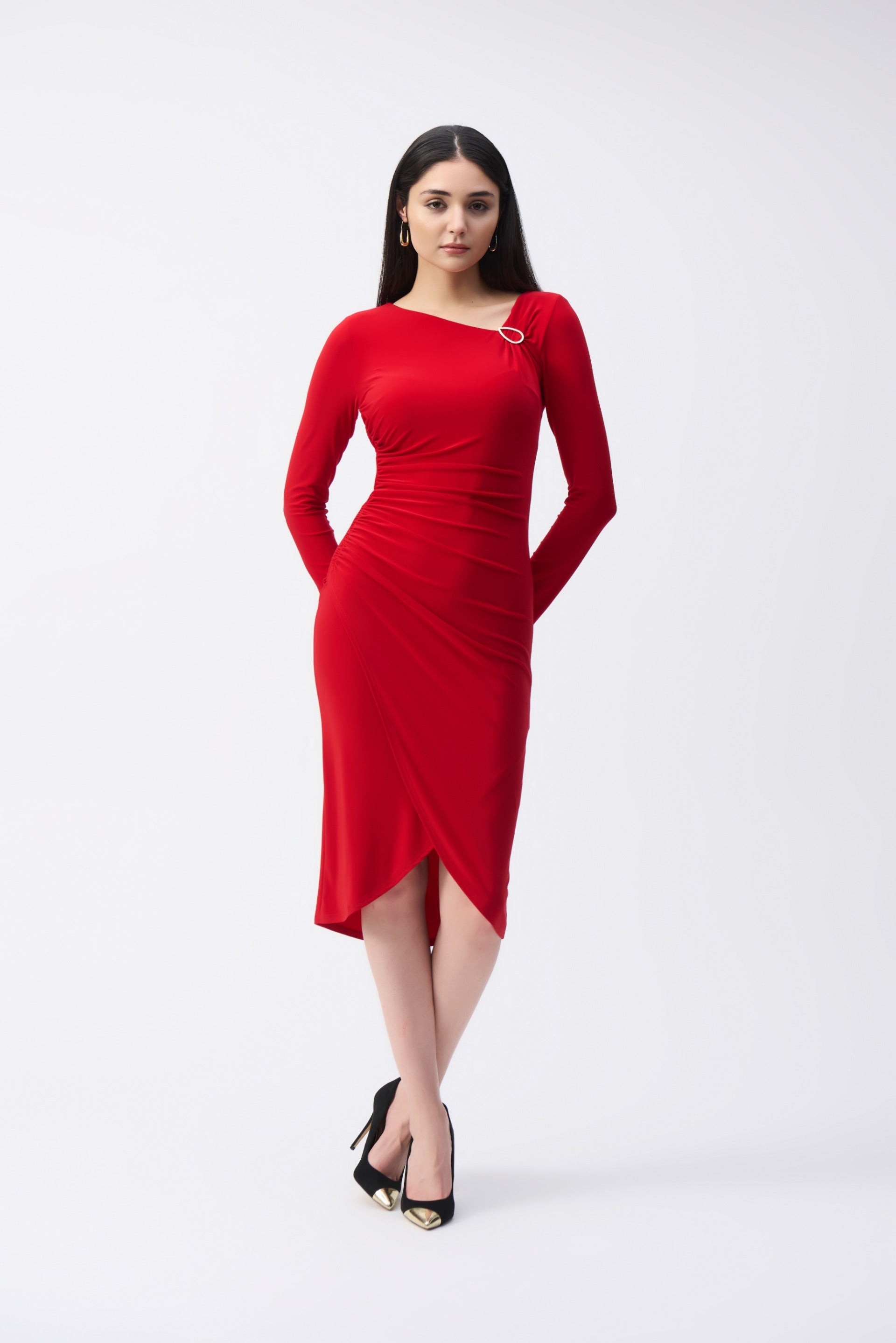 Joseph Ribkoff Lipstick Red Draped Sheath Dress Style 243169