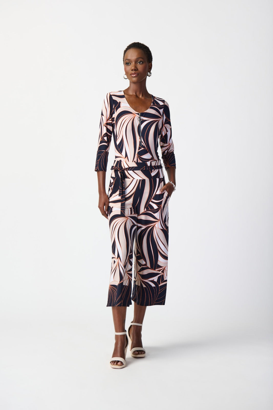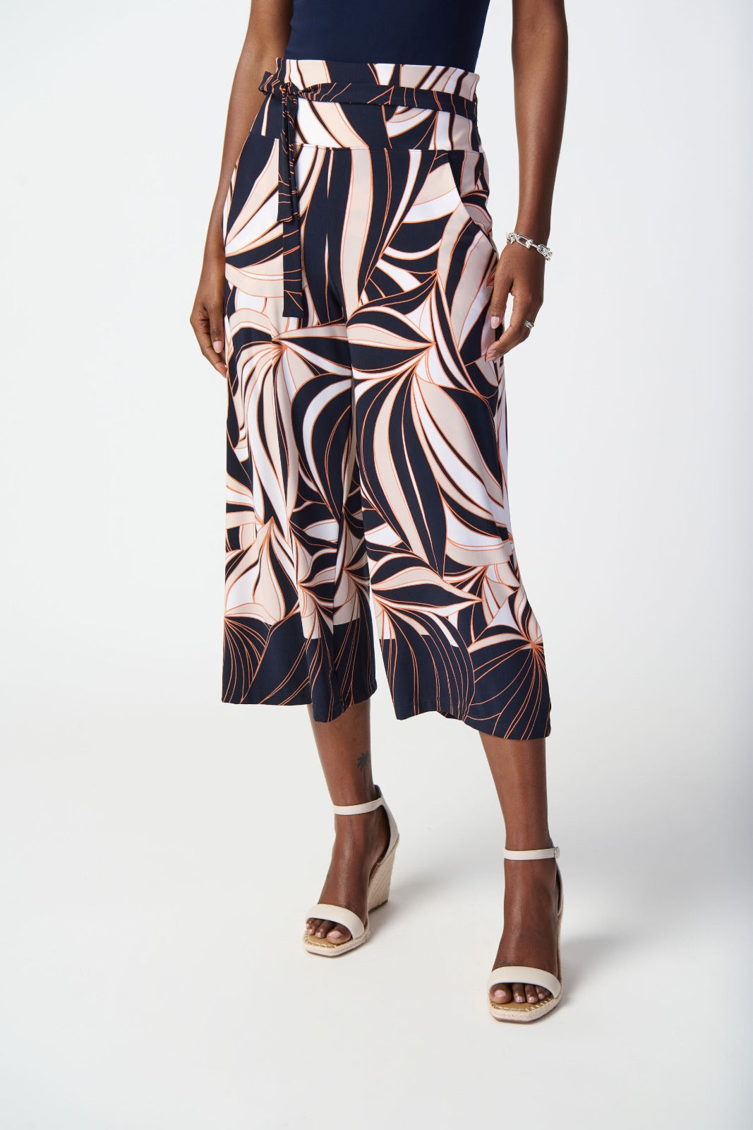 Joseph Ribkoff Midnight Blue/Multi Tropical Print Culotte Pants Style 241150