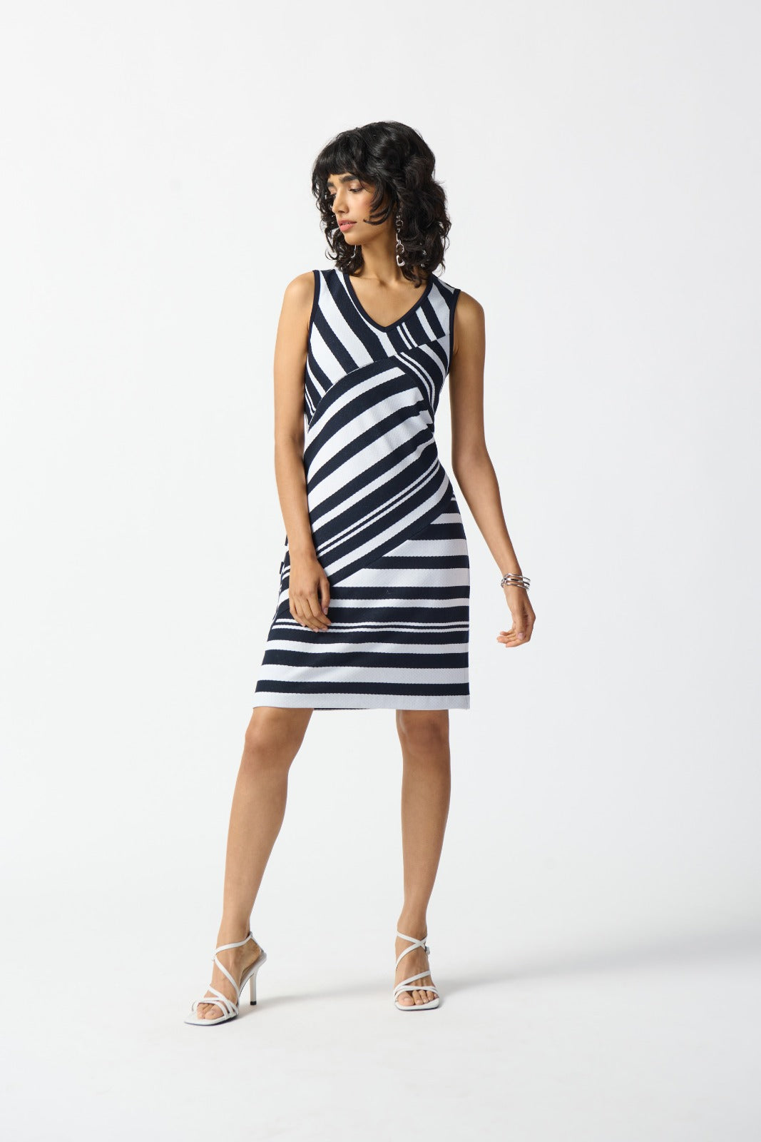 Joseph Ribkoff Midnight Blue/Off-White Sleeveless Sheath Dress Style 242077