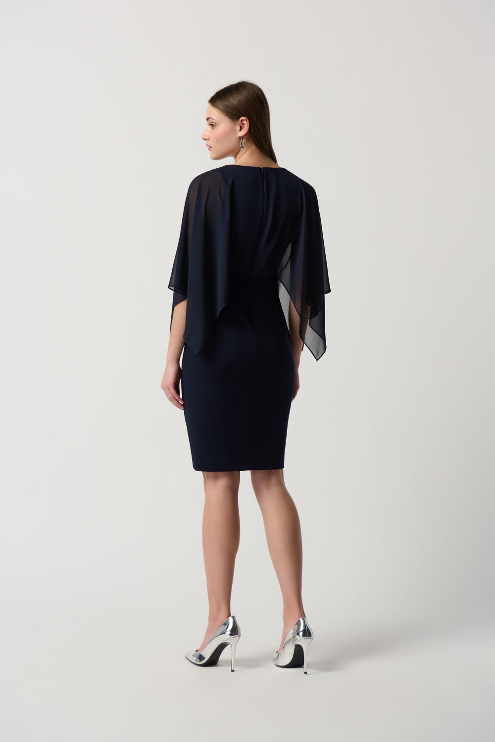 Joseph Ribkoff Midnight Blue Silky Knit Dress With Chiffon Kimono Overlay Style 234009