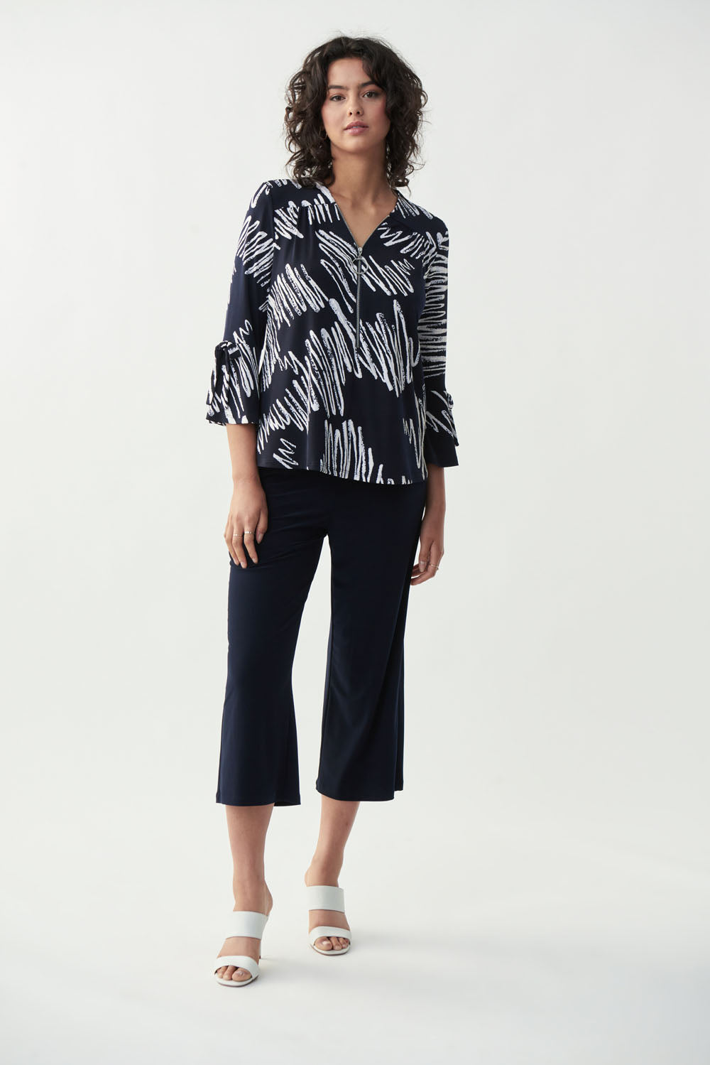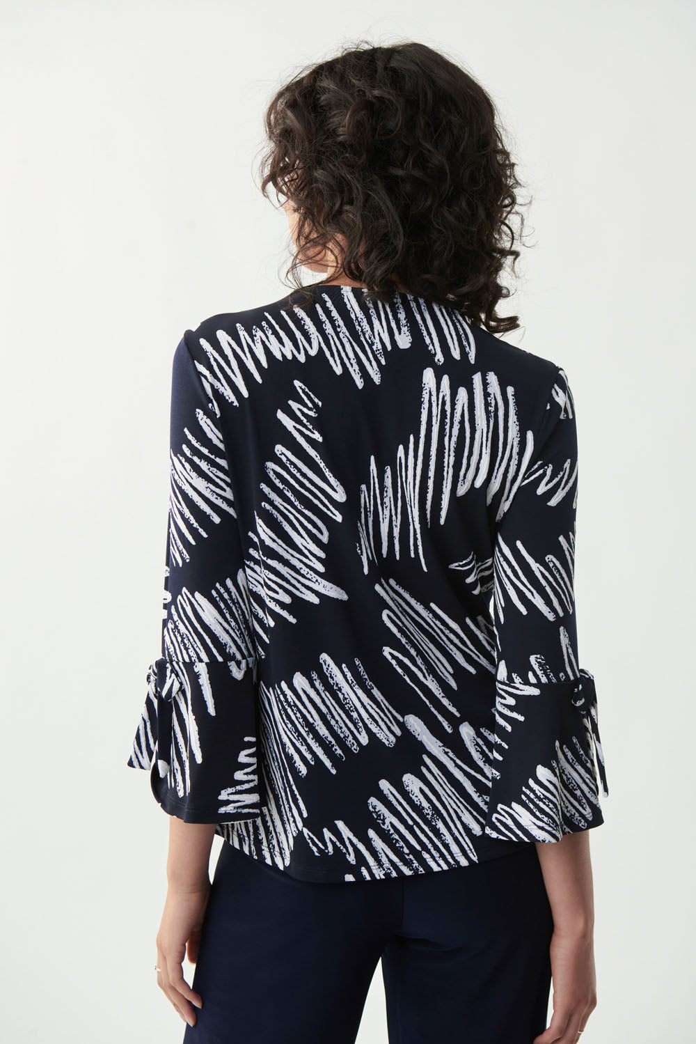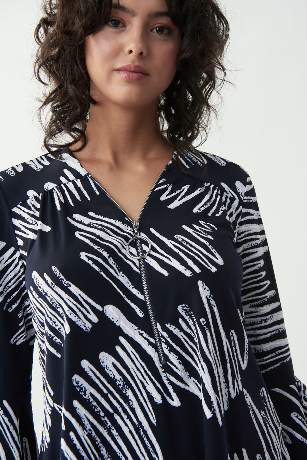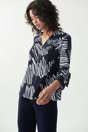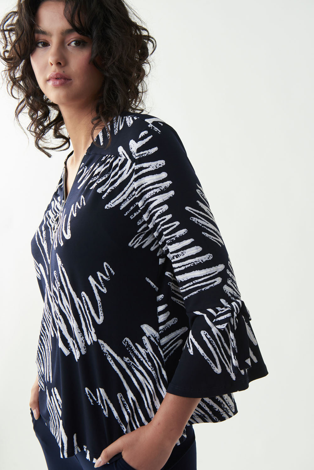Joseph Ribkoff Midnight Blue/Vanilla Zip-Up Printed Top Style 221190