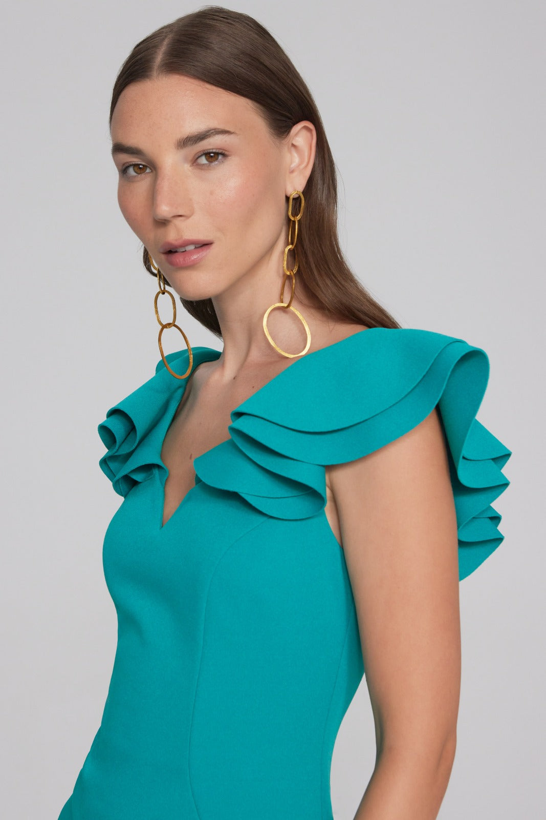 Joseph Ribkoff Ocean Blue Ruffle Sheath Dress Style 241747