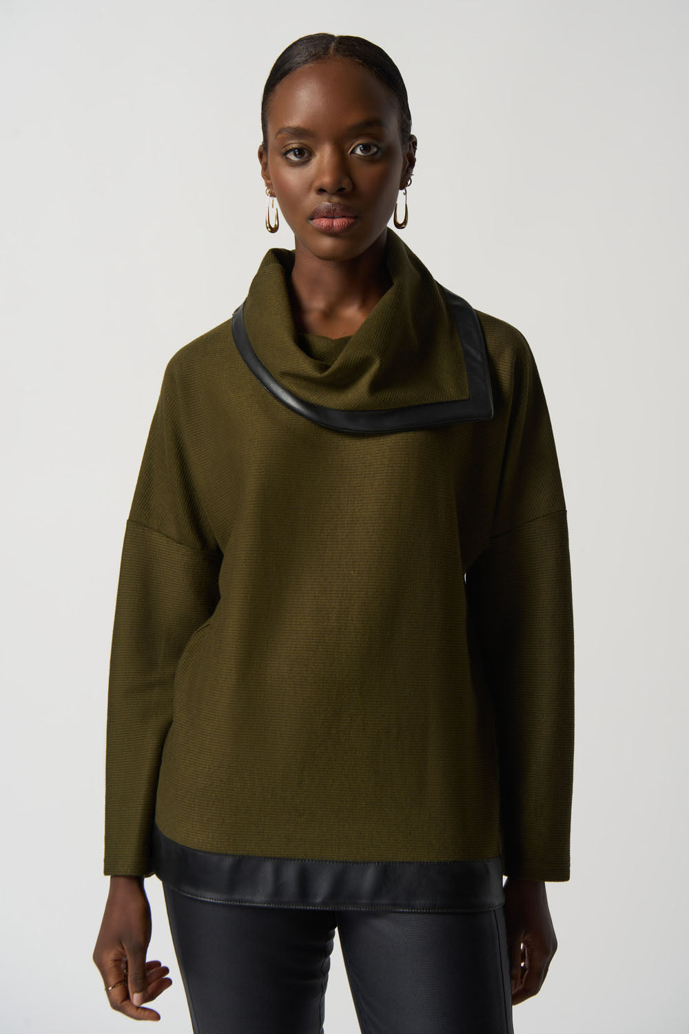 Joseph Ribkoff Olive/Black Cowl Neckline Sweater Style 233041