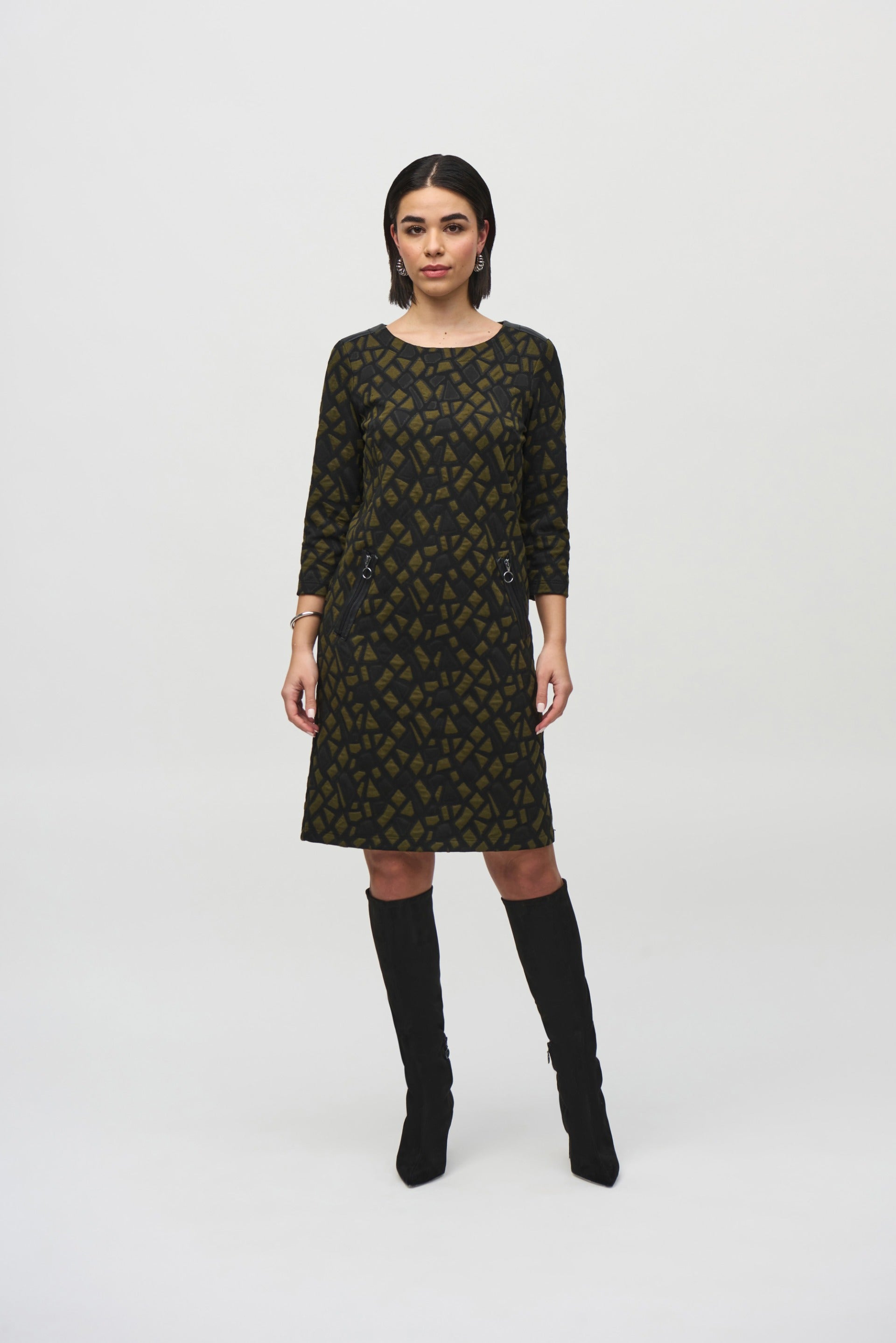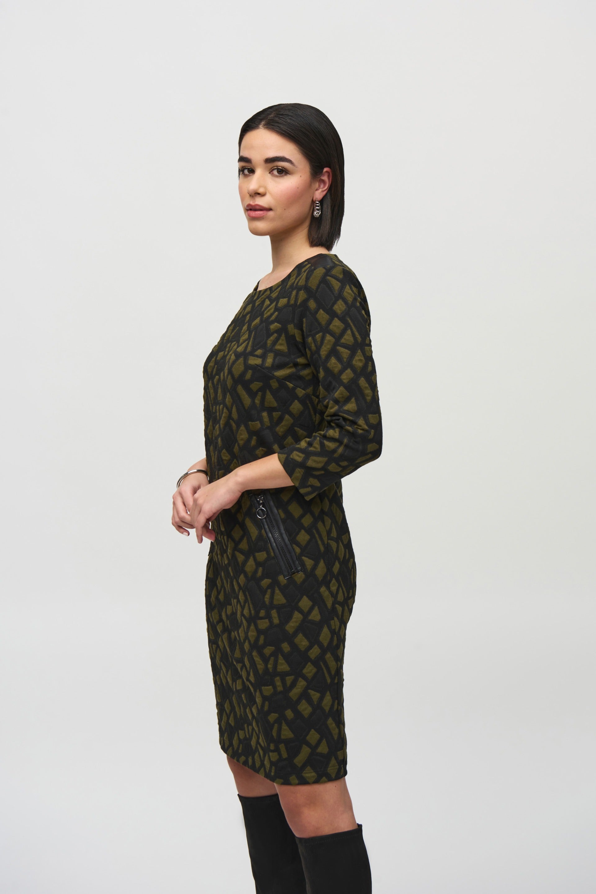 Joseph Ribkoff Olive/Black Jacquard Knit Straight Dress Style 244039