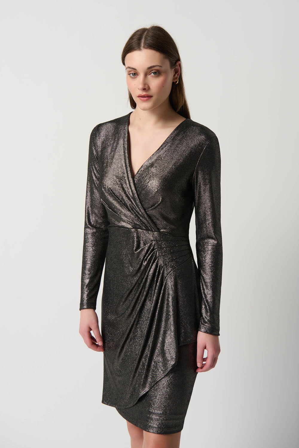 Joseph Ribkoff Pewter Novelty Knit Long Sleeve Sheath Dress Style 234124