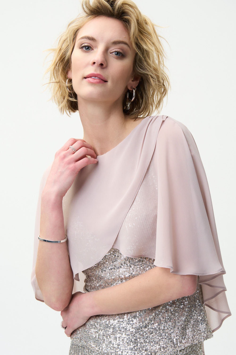 Joseph Ribkoff Silver Top with chiffon overlay Style 224075