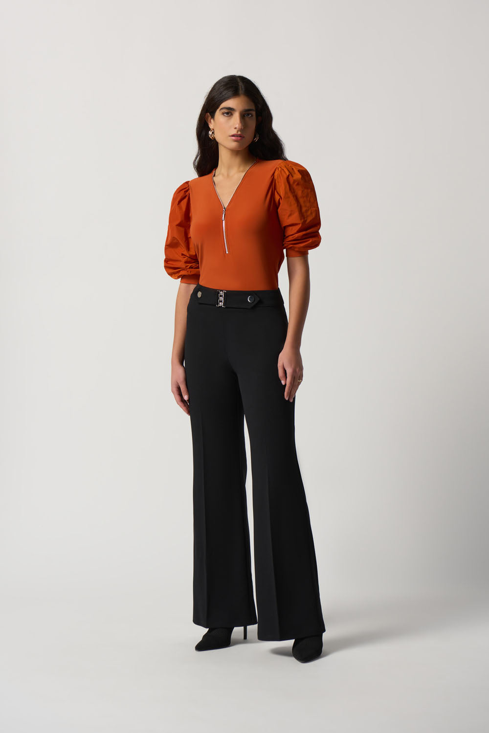 Joseph Ribkoff Tandoori Puff Sleeve Zipped Top Style 233025