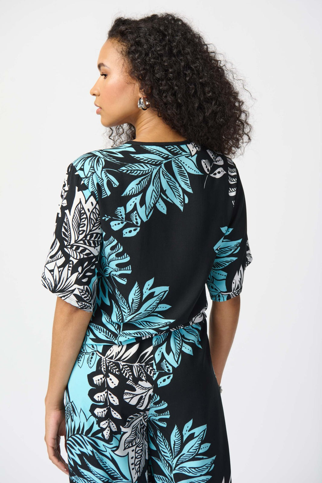 Joseph Ribkoff Tropical Print Gauze Front Tie Top Style 241219
