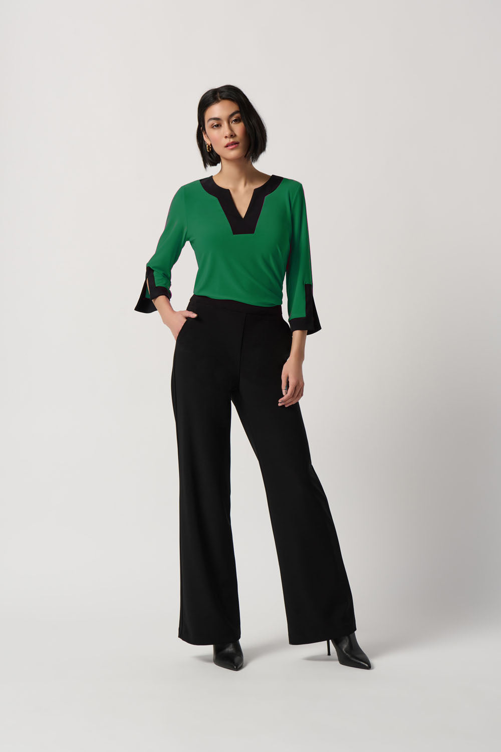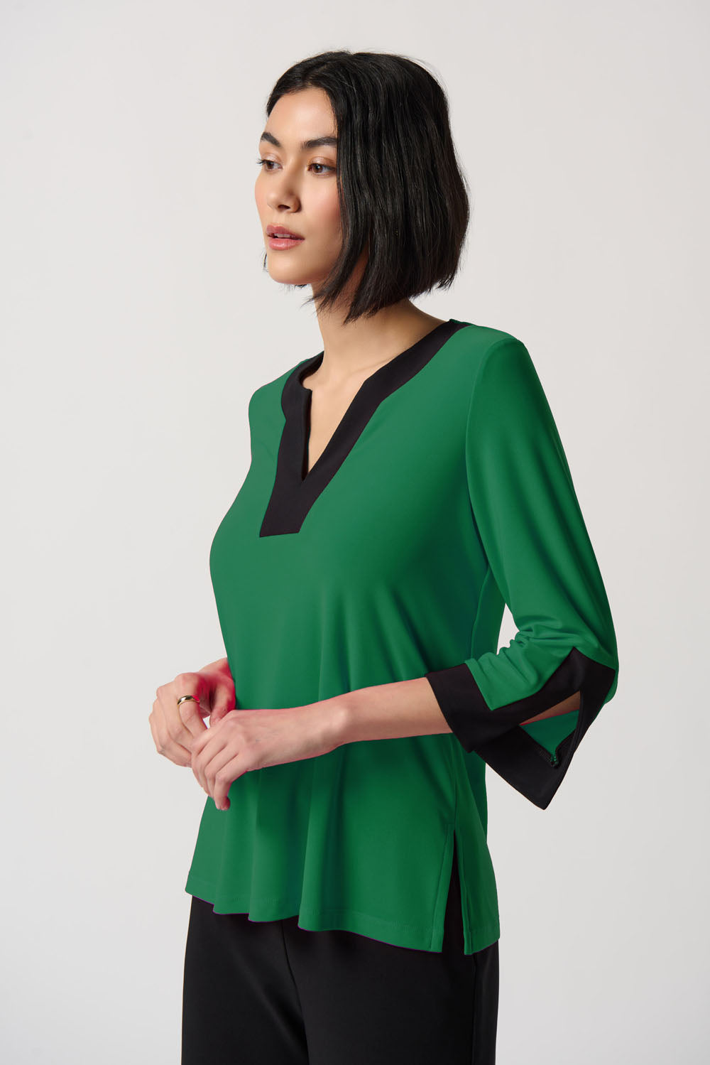 Joseph Ribkoff True Emerald/Black Color-Block Slit Neckline Top Style 234083