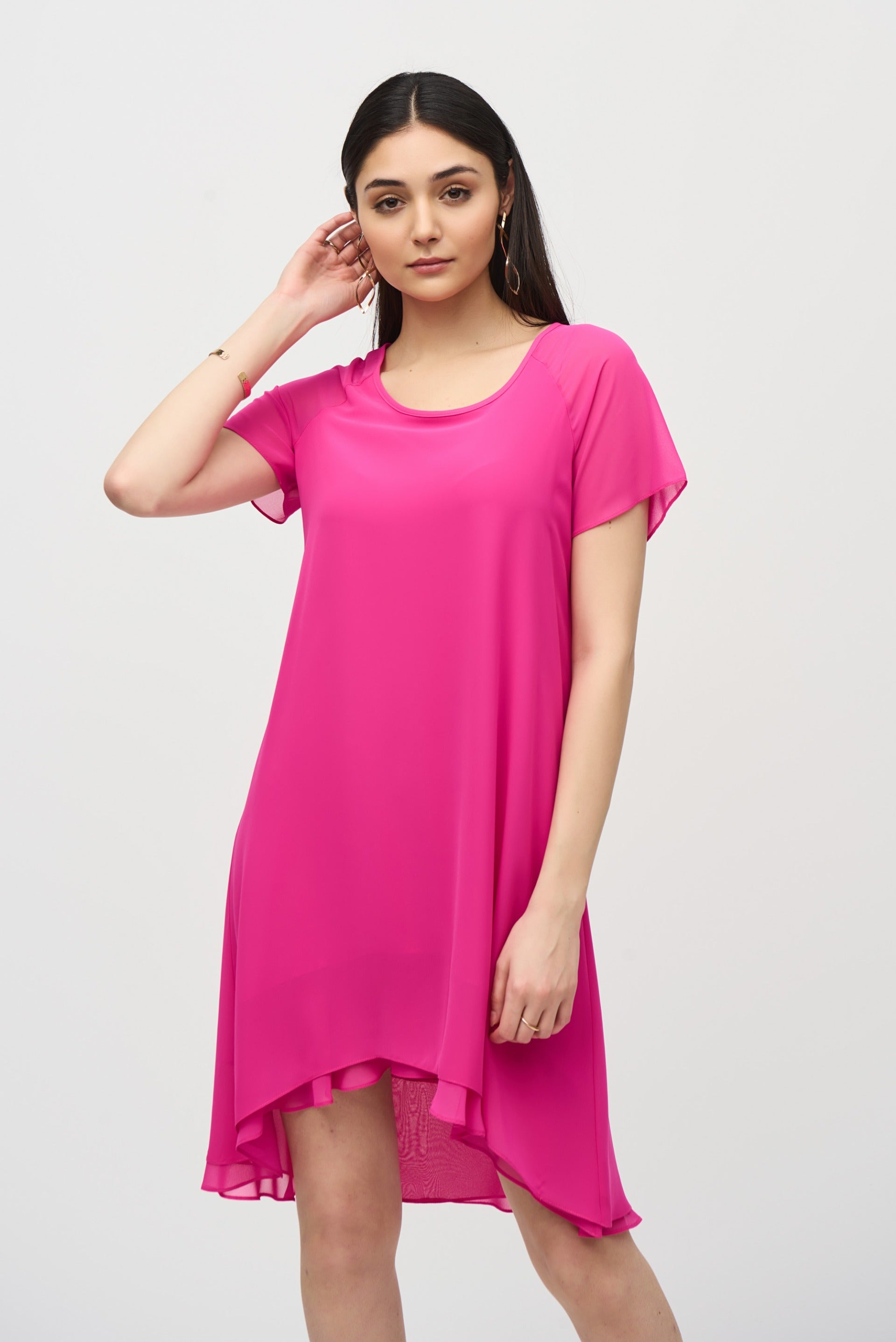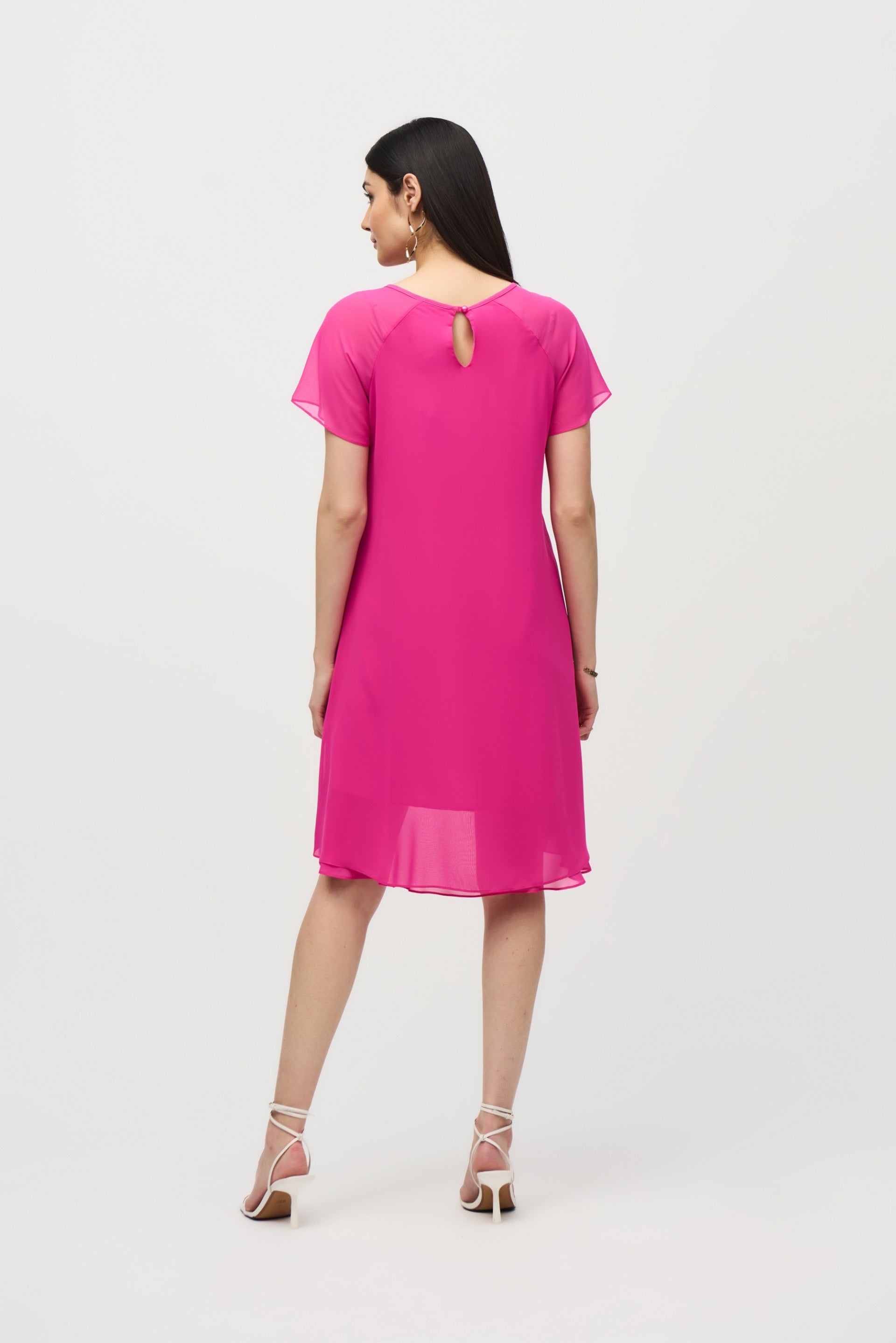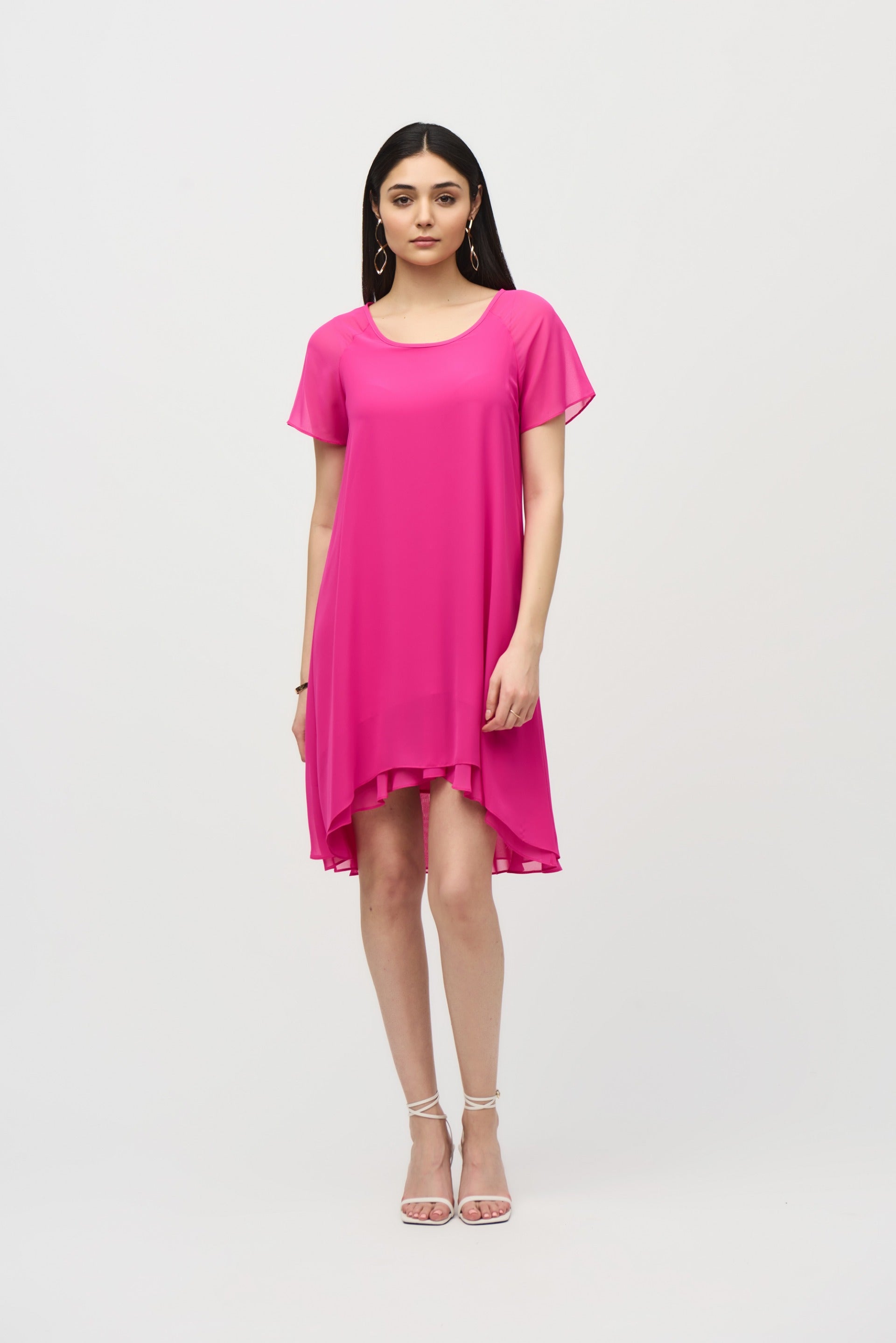 Joseph Ribkoff Ultra Pink Chiffon Layered Trapeze Dress Style 241084