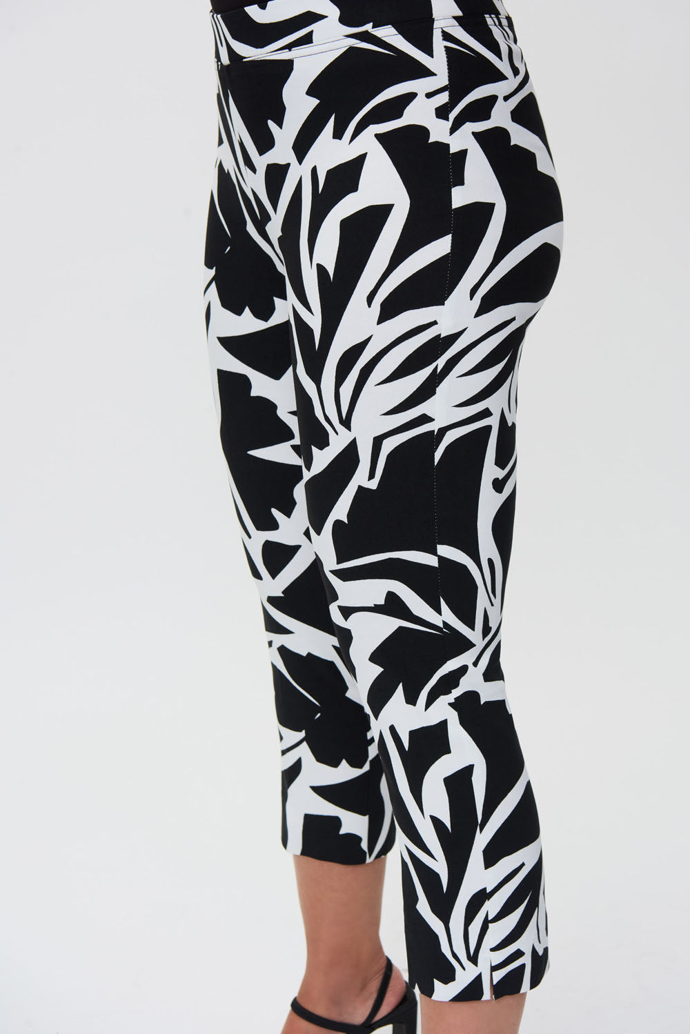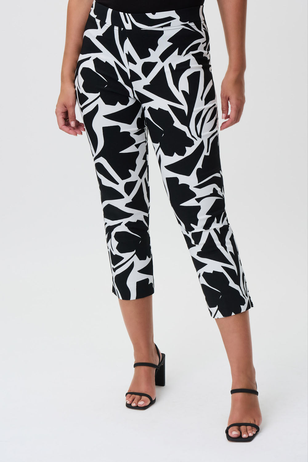 Joseph Ribkoff Vanilla/Black Floral Print Cropped Pull-On Pants Style 232258