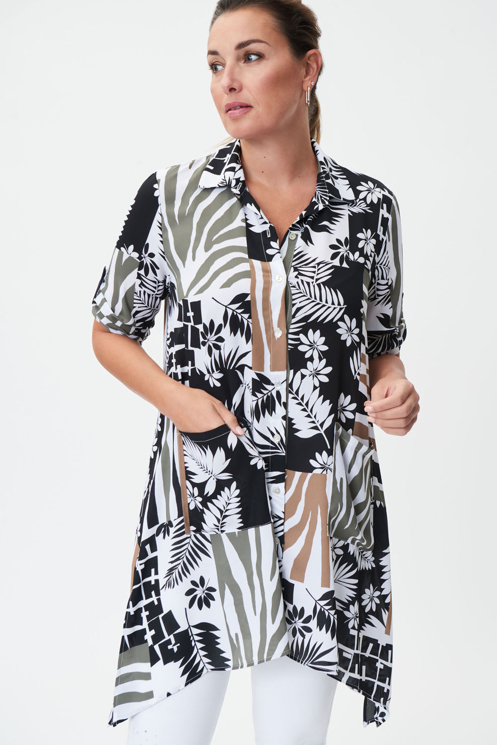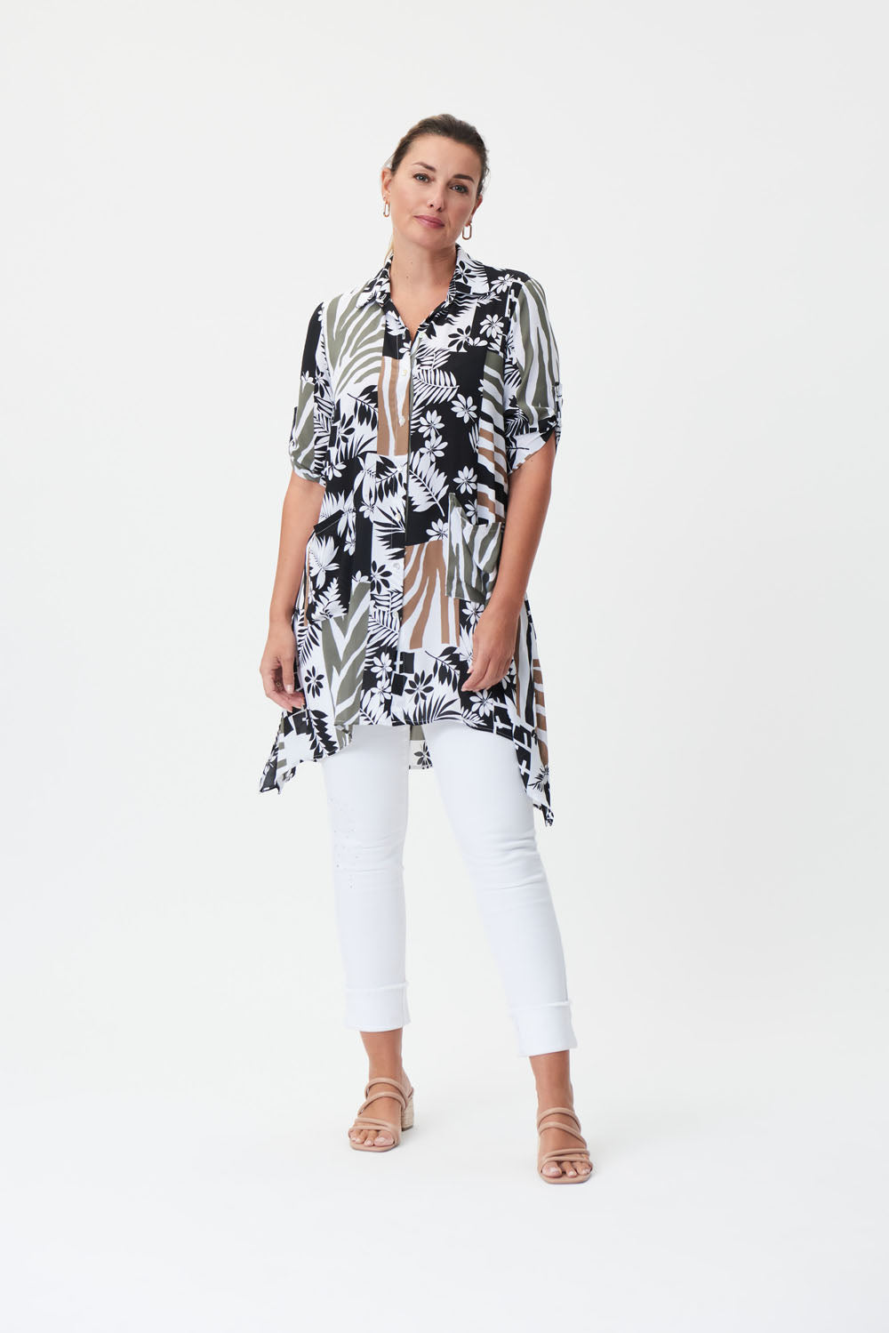 Joseph Ribkoff Vanilla/Multi Georgette Elbow Sleeve Blouse Style 232215