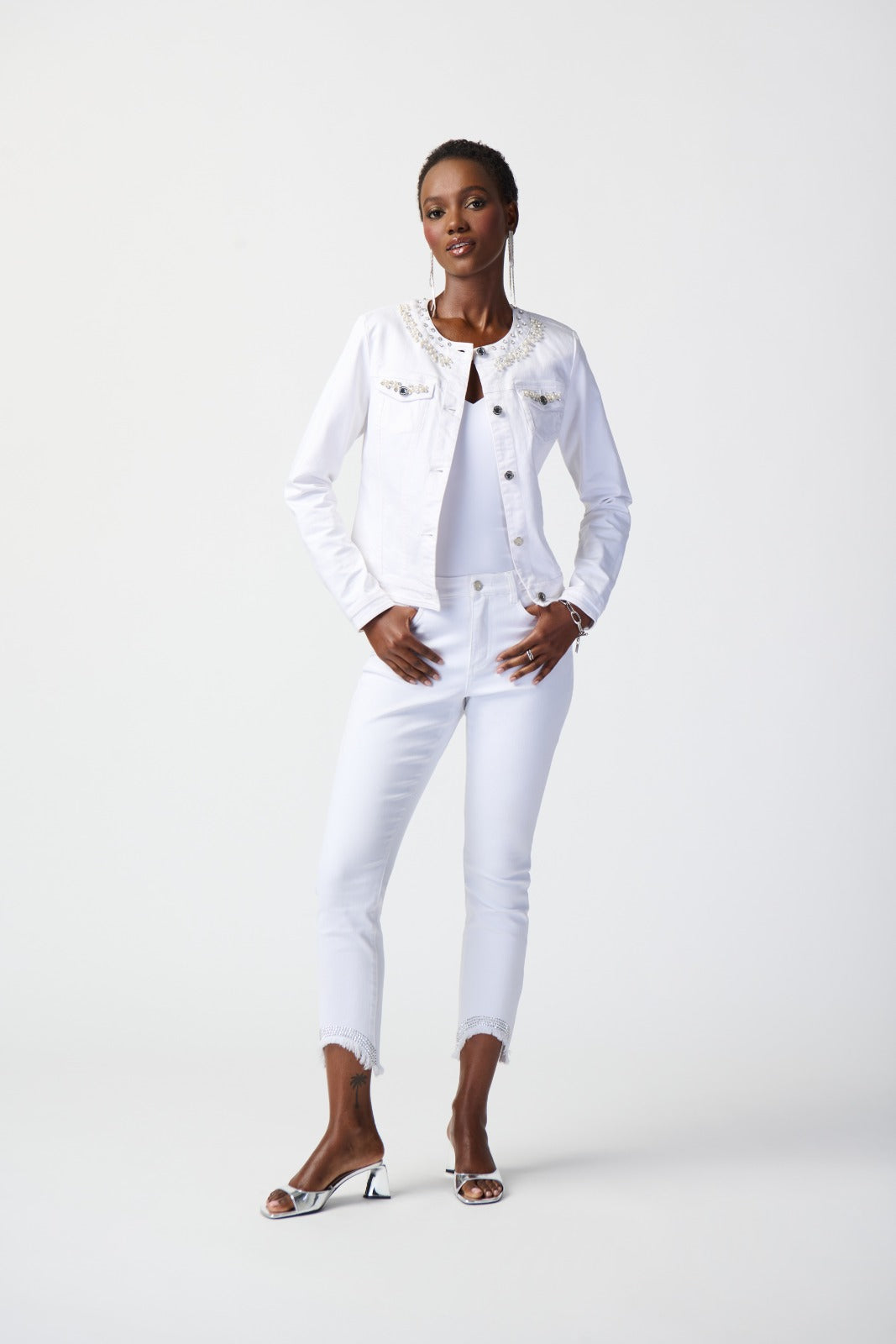 Joseph Ribkoff White Cropped Jeans with Frayed Hem Style 241921